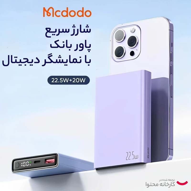 اگر به دنبال پاوربانکی با طراحی شیک، عملکردی قدرتمند، و قابلیت حمل آسان هستید، پاوربانک 22.5 وات 10000 میلیآمپر مک دودو مدل MC-294 میتواند گزینهای ایدهآل برای شما باشد. این محصول با ارائه سرعت شارژ بالا و سازگاری گسترده، نیازهای روزمره شما را برای شارژ دستگاههای مختلف برآورده میکند.