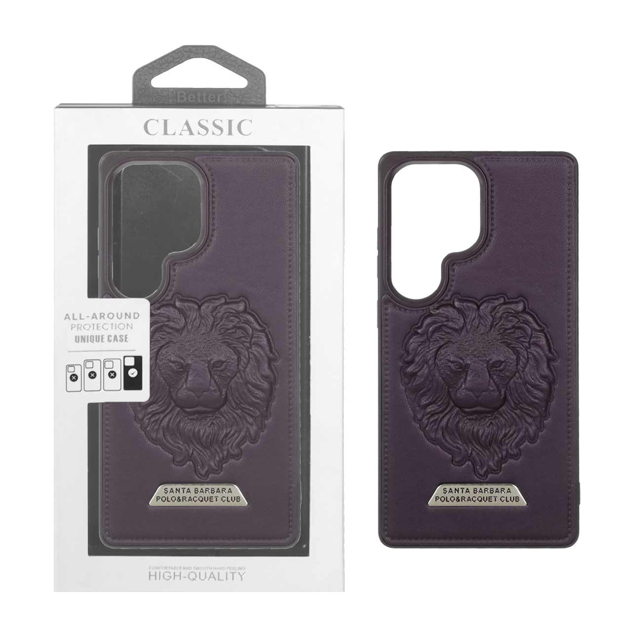 قاب اورجینال چرمی Lion برجسته Samsung Galaxy S25 Ultra – بنفش (پک دار)