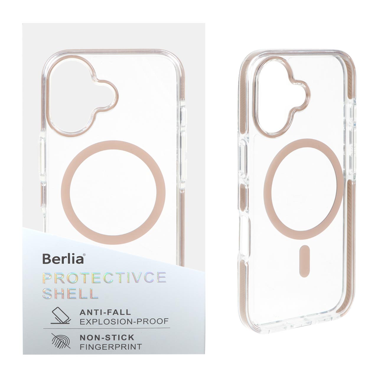 قاب اورجینال Berlia پشت سخت شفاف MagSafe دور رنگی Apple iPhone 16 – صحرایی (پک دار)