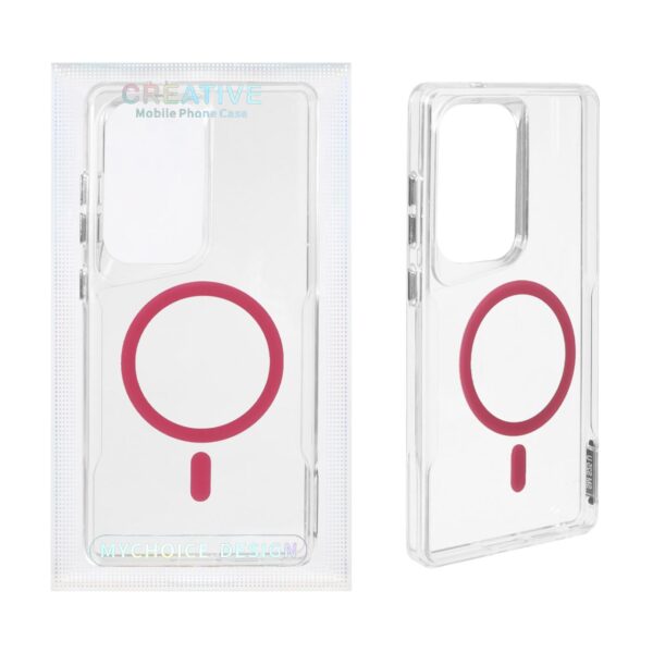 قاب پشت سخت شفاف Magsafe مدل Samsung Galaxy S25 Ultra – سرخابی (پک دار)
