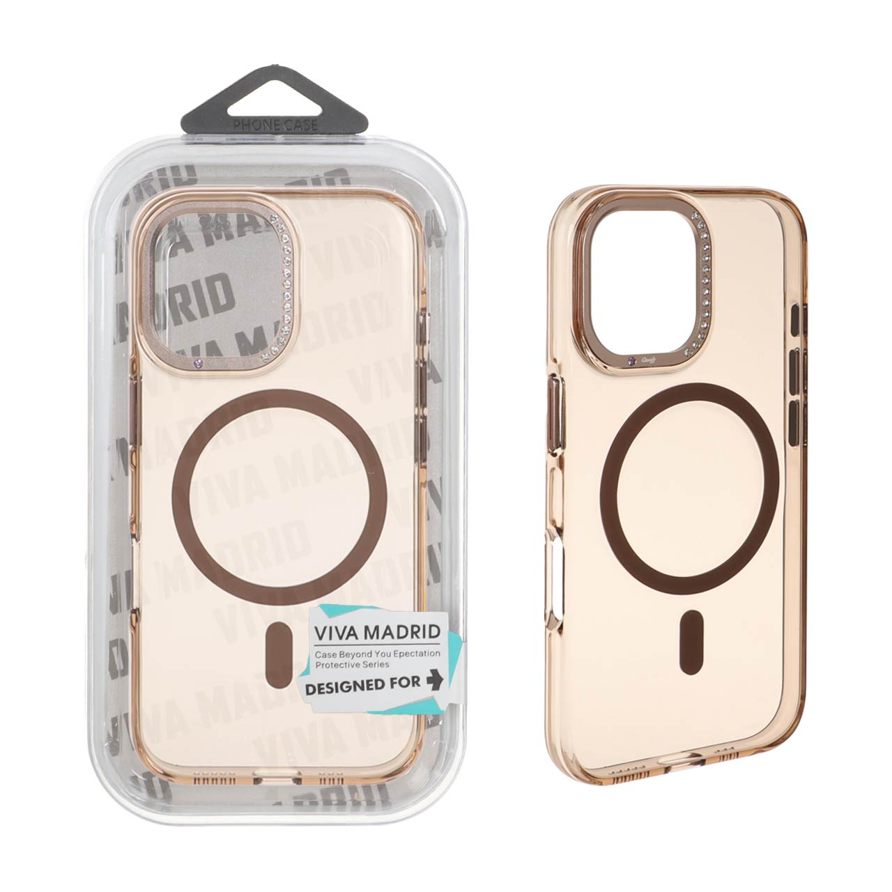 قاب اورجینال Viva Madrid پشت سخت MagSafe لنز نگین دار Apple iPhone 16 – صحرایی (پک دار)