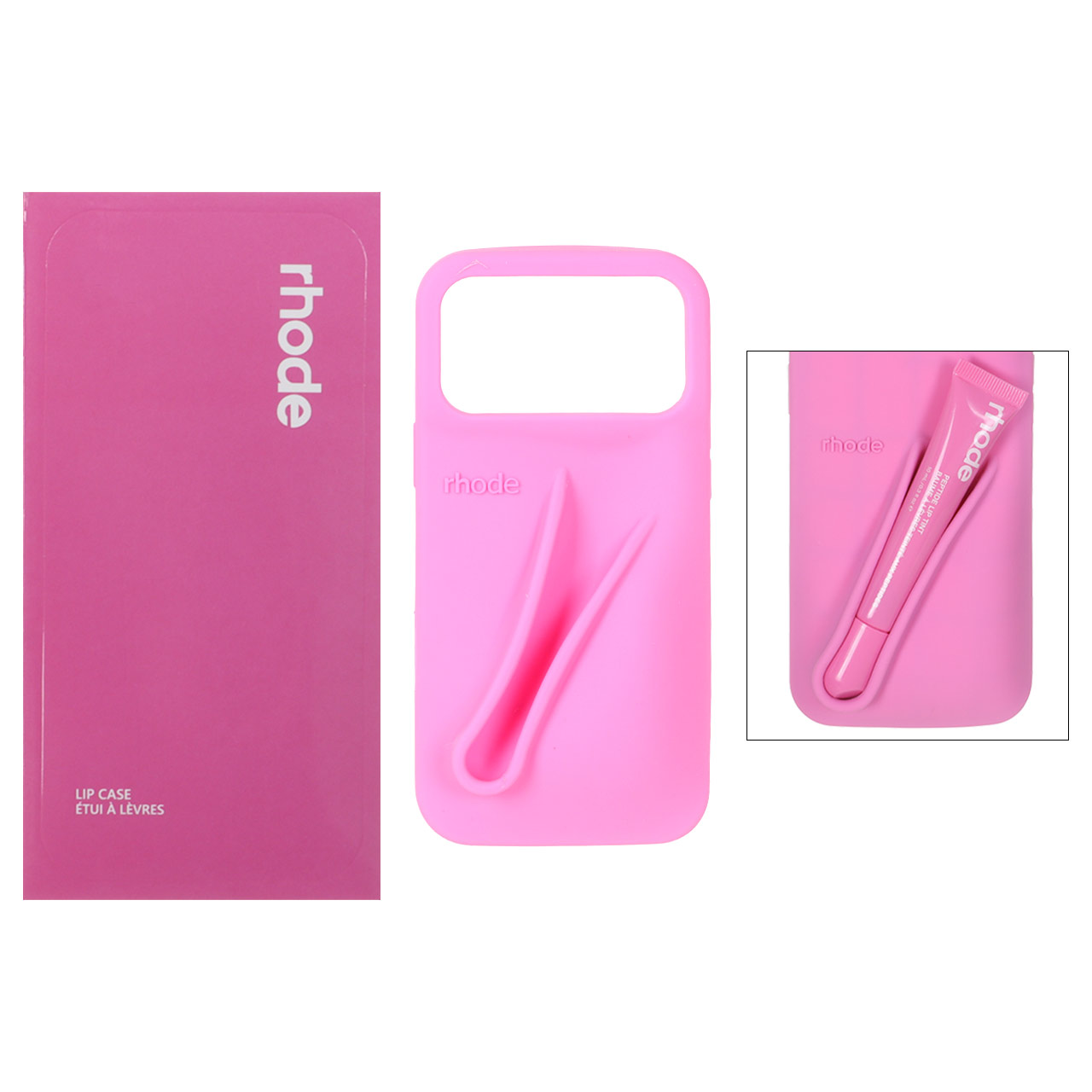 قاب سیلیکونی پاک کنی اورجینال rhode با ست لیپ گلاس Apple iPhone 17 Pro Max – صورتی (پک دار)
