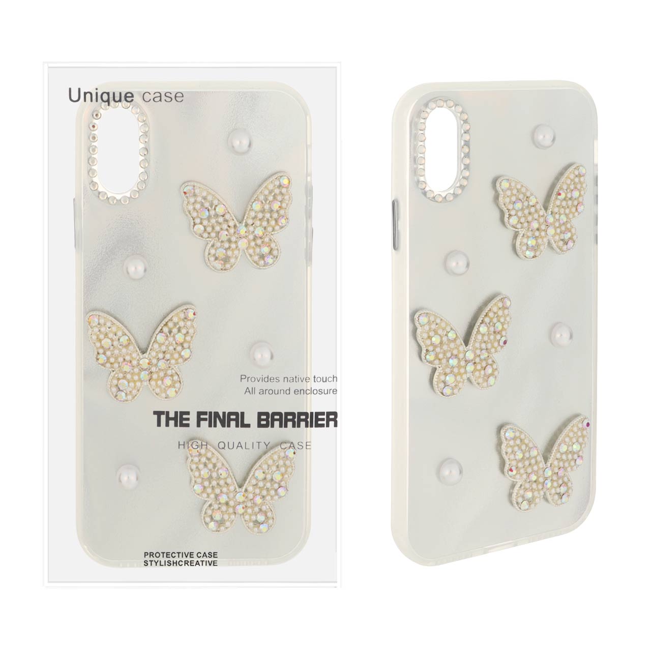 قاب پروانه ای برجسته مرواریدی نگین دار Apple iPhone X / iPhone XS – طرح 8 (پک دار)