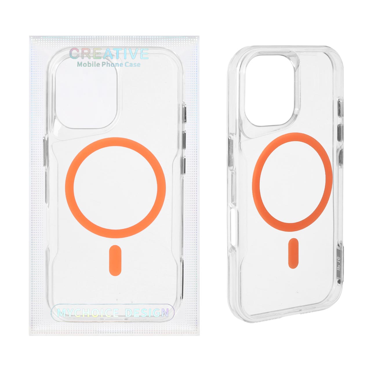 قاب پشت سخت شفاف Magsafe مدل Apple iPhone 16 – نارنجی (پک دار)