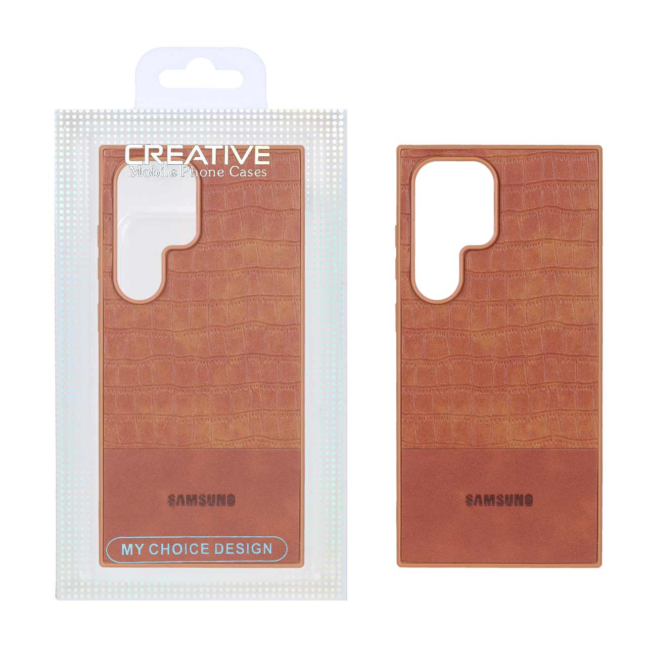 قاب پشت سخت چرمی کروکودیل Samsung Galaxy S24 Ultra – قهوه ای (پک دار)