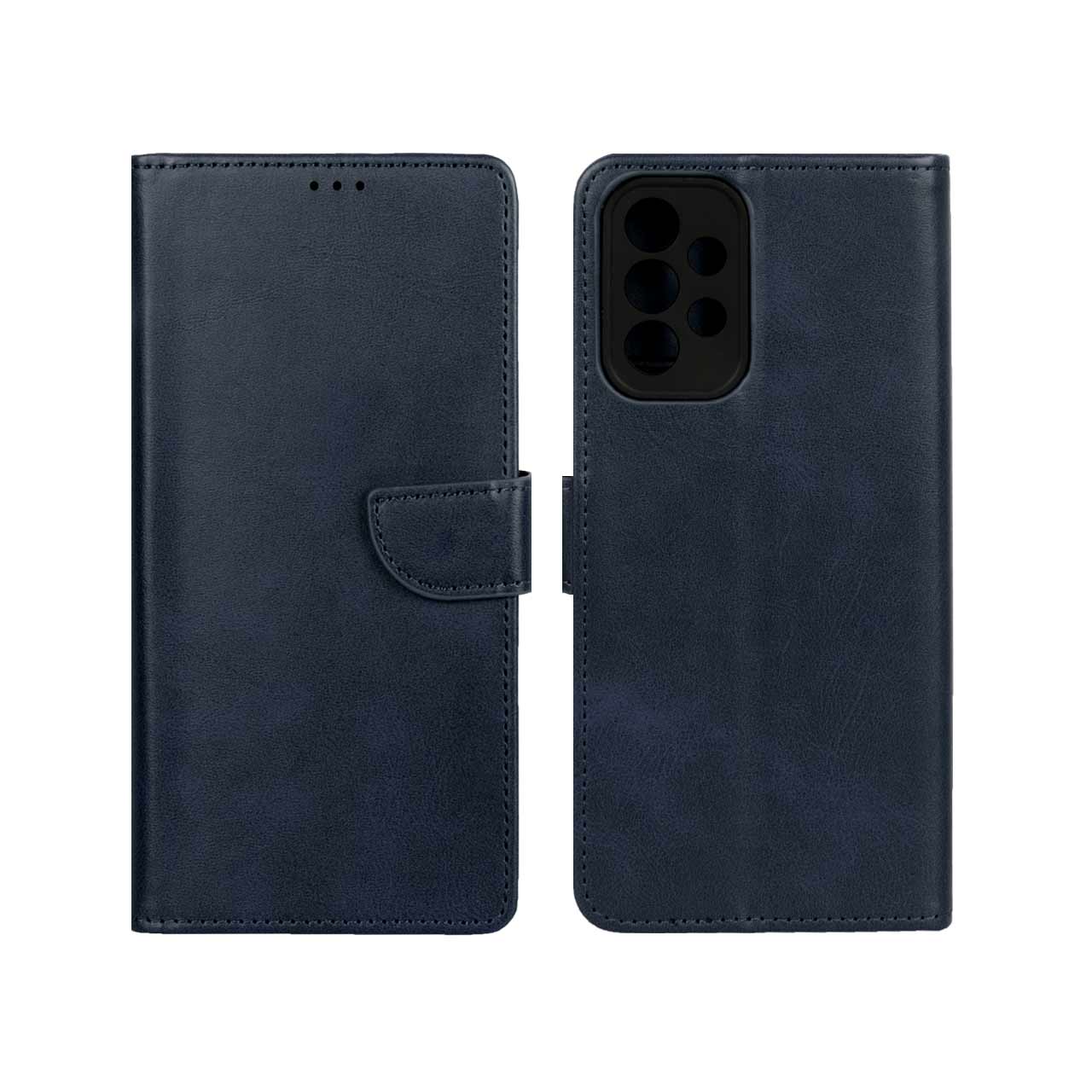 کیف چرمی موبایل مگنتی محافظ لنزدار Samsung Galaxy A73 – سرمه ای